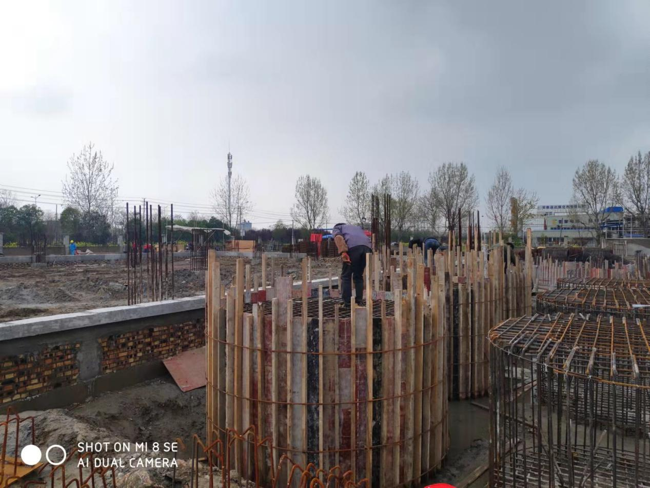 溶劑回收精餾塔基礎(chǔ) 框架施工完成,鋼結(jié)構(gòu)準(zhǔn)備安裝