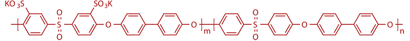 磺化單體與4,4-二氯二苯砜、4,4-聯(lián)苯二酚直接無分水條件下聚合,分子量、磺化度即離子交換容量以及磺酸基團(tuán)位置得到精確控制,重復(fù)性得以保障,聚合快速,生產(chǎn)周期短、能耗低,